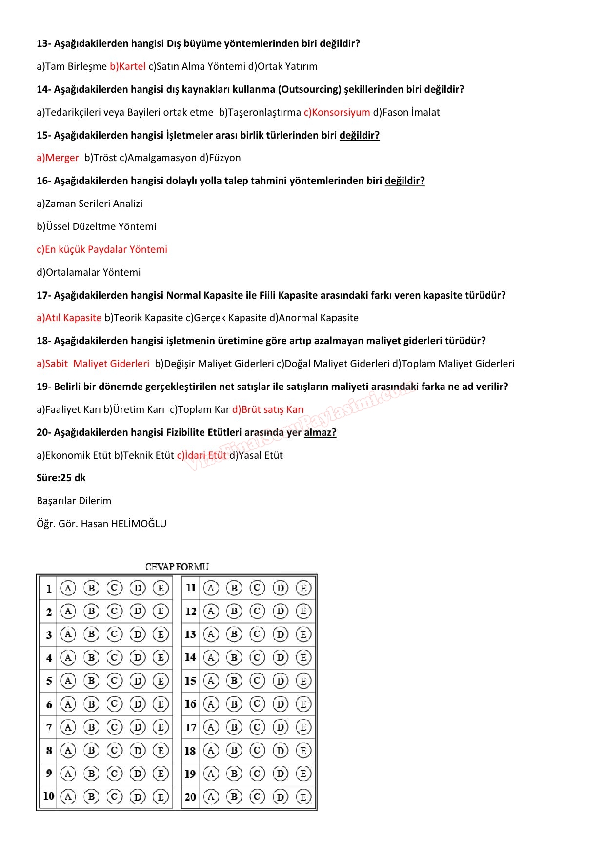 genel isletme dersi alistirma sorulari online sinavim blog